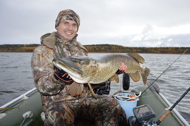 Руки и ноги просто коченеют но мы продолжаем ловить. Особенно упирается Паша — у него пока без поклёвок. Пробуем и старые и новые места — тихо и холодно. Туман не хочет рассиваться и мы замёрзшие приуныли. Уже ни на что не надеясь решаем зайти на первое плато в последний раз перед возвращение на базу. Первый проход и у меня опять злейшая поклёвка на пиг шада. Резко появляются и силы и желание, но Паша меня тянет на базу, мол уже всё — время вышло и я с чувством чего-то незавершонного завожу мотор и мы идём обратно. Я было успокоился что трофей пойман и сезон можно закрывать, но в последний момент щука мне намекнула — мол ещё не всё ждём тебя снова в гости!