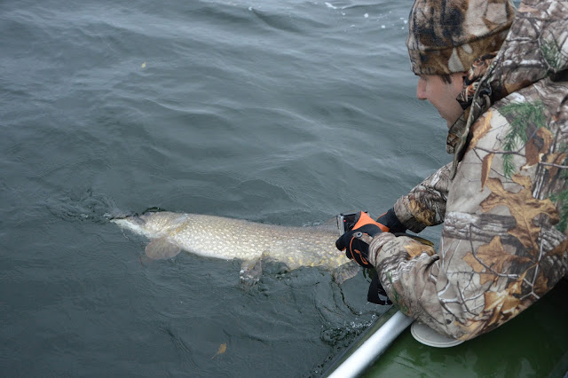 Решаем вернуться на самую первую утреннюю точку. Паша берёт большого фатсо и получает поклёвку — щука есть но видимо мелкая или неактивная. Меняет на фатсо 10-ку и ловит свою вторую щуку за день 56см, через некоторое время и третью 65см.