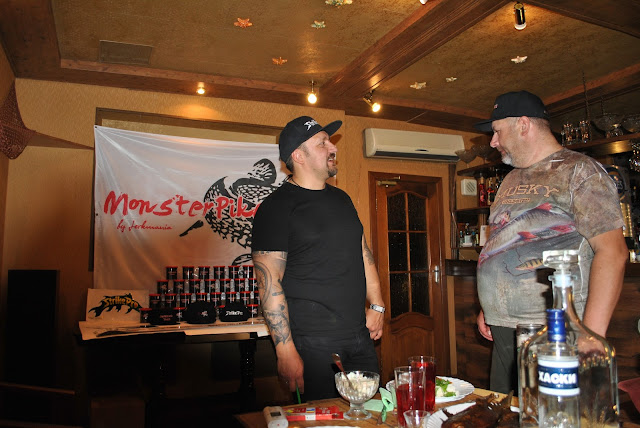 Время к вечеру и мы возвращаемся на базу. Почти все собрались и вот начинается открытие первого Monster Pike Fest. Новые и старые друзья, подарки, интрига от розыгрыша секретного приза придуманная Сан Санычем. Очень понравилось идея со знакомством всех участников. Все вышли, представились по очереди и записались в таблицу по очереди. Ян и Виталий здорово провели официальную часть, как будто ваше призвание ребята! Очень вкусный и ужин и приятная компания. Особенно понравились лещи горячего копчения. Так и пролетел вечер и мы уходим спать.
