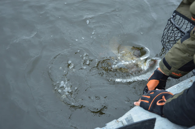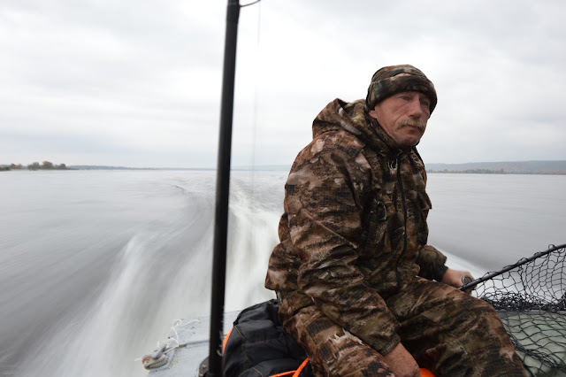 Так и пролетел день, места интересные и разные, но всё-же больше джиговые c очень крутыми свалами в 5-10 метров. Очень много лодок и сетей. Некоторые проверяют прямо при нас не стесняясь. Серёга говорит что многие ставят официально, оплачивают небольшую сумму и получают разрешение. Рассказывает что многим там больше не за что и жить, только рыба грибы да ягоды приносят хоть какой-то заработок. Ну что ж, ему виднее...