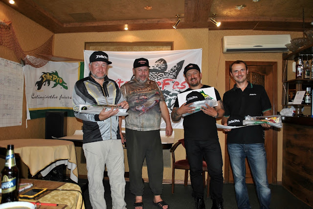 Вечером каждый вышел и рассказал о своих результатах, где и на что ловил и записал свой улов в таблицу. Это парни классно придумали, ведь каждый всегда мог подойти и глянуть кто как отловился. Потом была импровизированная презентация приманок спонсора мероприятия Strike Pro, в которой я без подготовки немного рассказал о крупных силиконовых приманках Strike Pro их монтаже и некоторых тонкостях ловли, ведь они дважды приносили мне победу на белорусском джеркфэсте от jerkbait.by